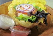 Taco Salad - Assorted Greens topped with Chili, Cheddar Cheese, Avocado Dip, and Sour Cream - $9.99